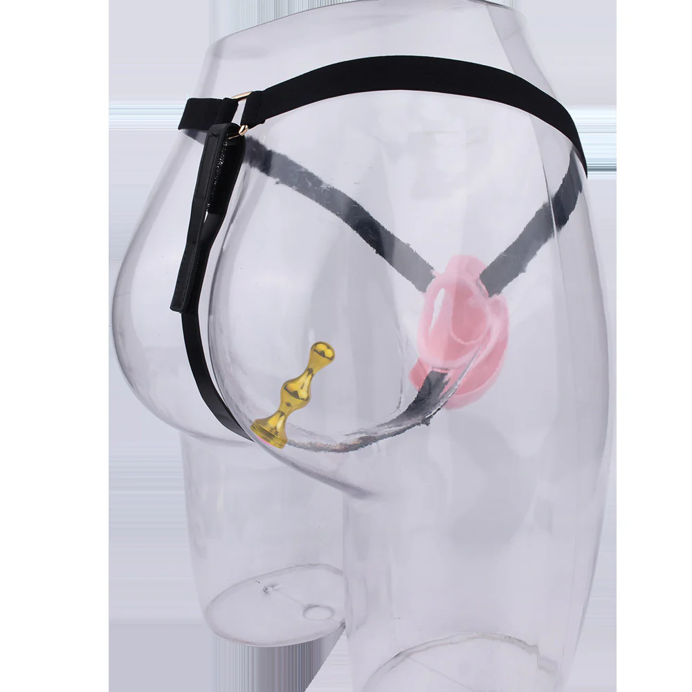 Experience ultimate control and pleasure with the Pussy Chastity Cage. The cage comes in 3 sleek colors and the anal plugs feature a luxurious gold or silver design with a pretty pink top. Stay securely locked and enjoy a new level of satisfaction.